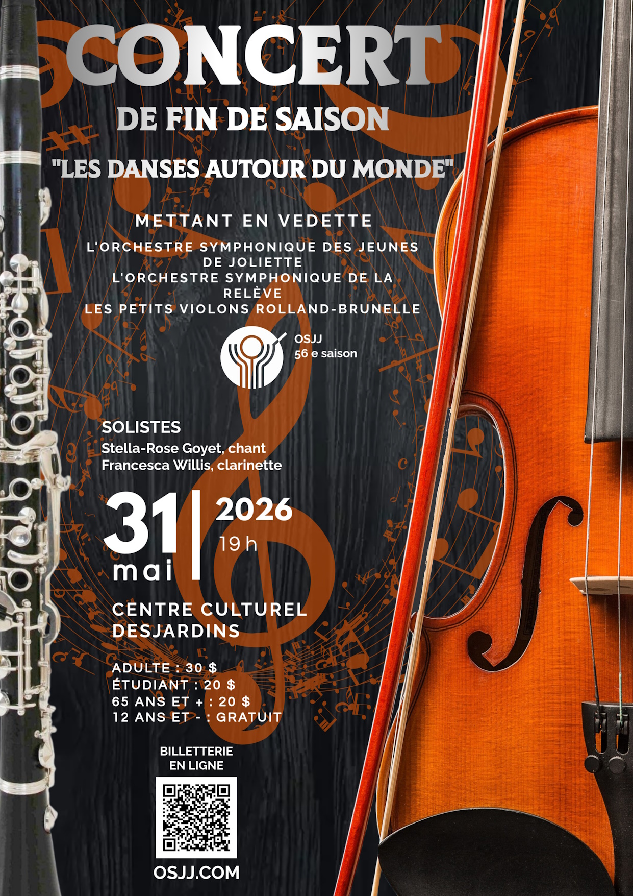 L’Orchestre symphonique des jeunes de Joliette présente son concert de fin de saison le dimanche 31 mai 2026 à 19 h au Centre culturel Desjardins de Joliette. Pour l’occasion, les trois formations sous la direction...